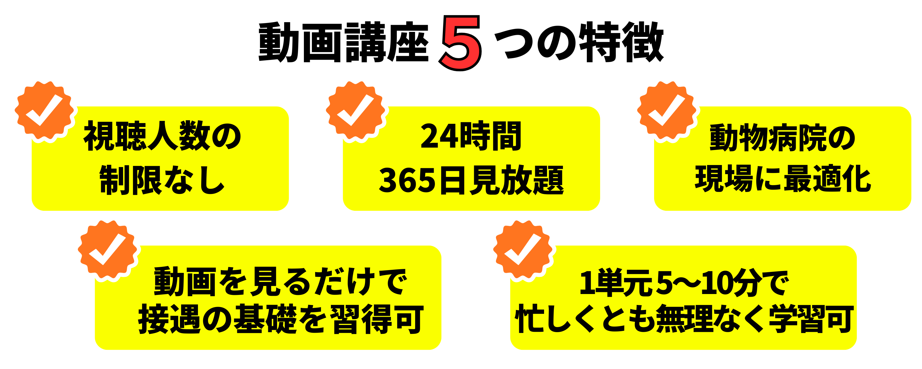 ※5〜10分程度の動画で構成し、繁忙期でも無理なく視聴できる内容です。